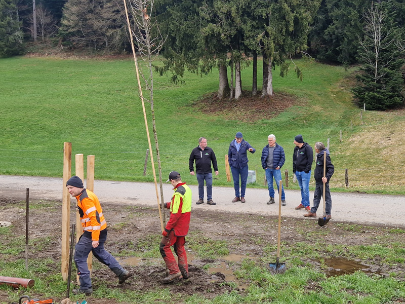 An diesem Standort haben nun die Mitglieder der Forstkommission mit Hilfe des Forstpersonals der Korporation Zug zwei neue Stieleichen gepflanzt.